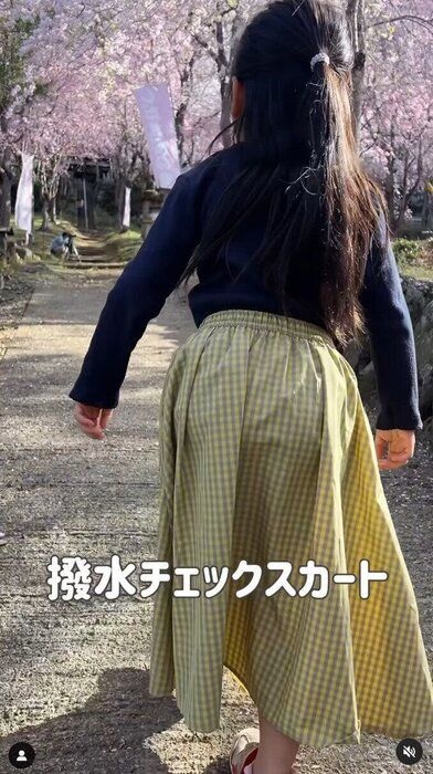 andori.sさんは「撥水チェックスカート」を購入。水を弾く撥水加工つきで、両サイドにはポケット&右側はファスナーつきなんだとか!ウエストはゴムで脱ぎ履きしやすく、UVカット機能もついているので紫外線対策にも◎。大人用のサイズ展開もあるのでリンクコーデもできるようですよ♪