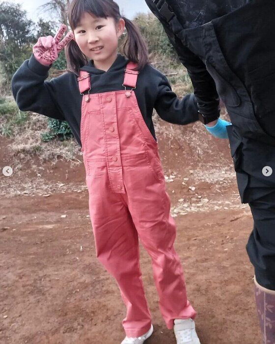CHIAKIさんは、こちらのオーバーオールを購入。インスタで見て、柔らかみのある赤に娘さんが一目惚れしたんだそう♪ ストレッチも効いていて、動きやすさもバッチリとのこと。絶妙な場所にポケットがあり、使い勝手もコスパも最高だとお気に入りの様子。とってもお似合いですよね!