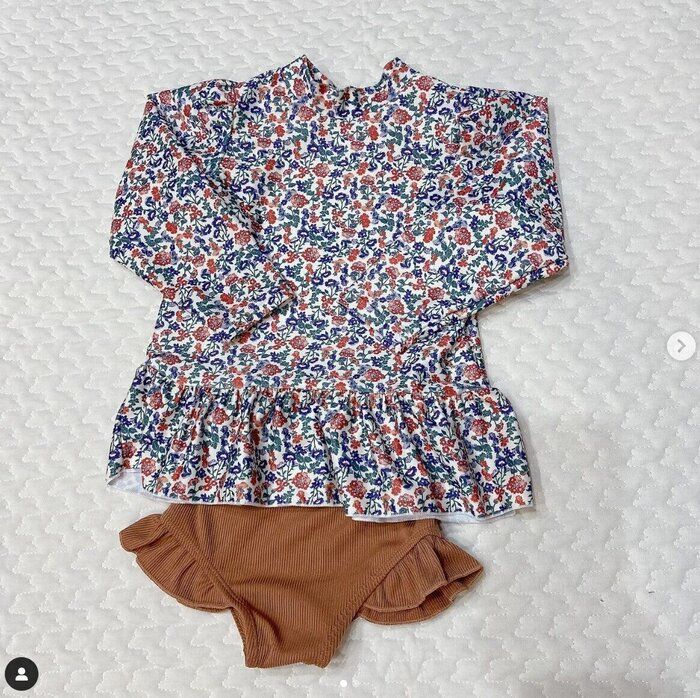 こちらはMさんがバースデイで発見した、セパレートタイプの水着。いつも「ラッシュガードを着ると、かわいい水着が隠れてしまう」と悩んでおり、今回は長袖タイプの水着をセレクトしたんだとか!色味や柄がとてもオシャレで、大人顔負けのデザインですよね♪