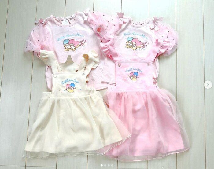 imoon12keyさんがゲットしたのは、リトルツインスターズ「キキ&ララ」のTシャツとジャンスカ。どちらのアイテムもチュールが使われており、とてもかわいいですよね♪ ロゴやキャラクターは刺しゅうになっているので、高見えしそう!