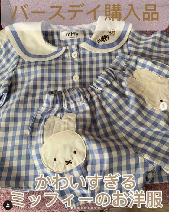 haruto__clothesさんが「かわいすぎる」とおすすめするのは、ミッフィーのセットアップ。えりもとの刺しゅうや、えりの後ろ側に耳がついていること、パンツの両足にミッフィーの顔がついていることなどが、お気に入りポイントなんだとか♪ とても爽やかなデザインで、これからの時期にぴったりですね!