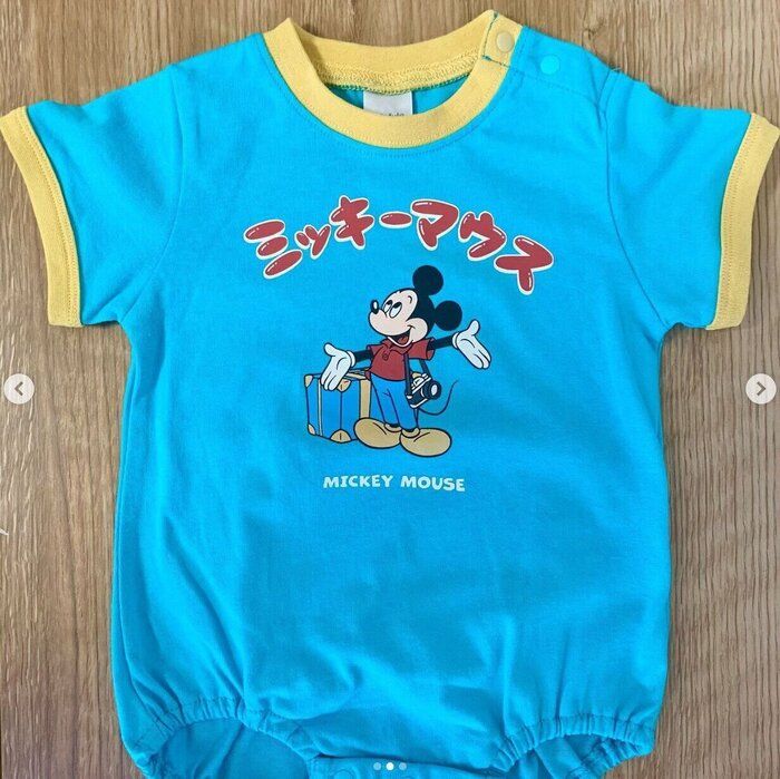 こちらは_tomiko219_さんがバースデイで購入した、ミッキーマウスの半袖ロンパース。夏は着替える回数が多くなるので、「安くてかわいい服はありがたい」とのこと♪ 鮮やかなブルーの色味と、レトロなイラストがかわいいですよね!