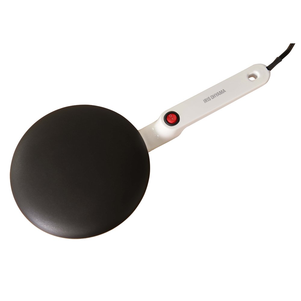 アイリスオーヤマのクレープメーカーは、ハンディタイプ。価格が安く人気がある商品です。焼ける生地のサイズは直径約20㎝。生地を入れる専用トレー付き。