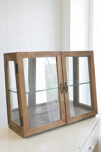 コレクションのディスプレイには、このように卓上型のキャビネットがピッタリです。枠は木材ですが面部分はガラス仕様なので、どこから見ても中の物が見える作りになっています。大事なコレクションを汚さないように、扉付きタイプを使用すると安心安全です。