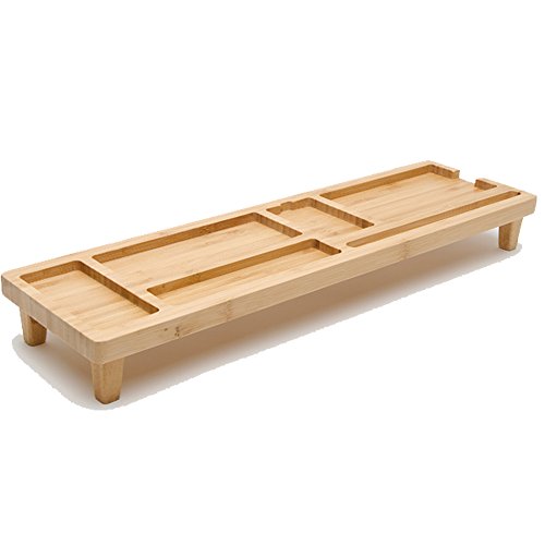 デスクトップパソコンの前に置いて、台の下にキーボードを格納できる卓上台!! 台の上は細々とした小物が整理できる仕切りがついていて、ステーショナリーやスマホ、パッドなどを置くことができます。