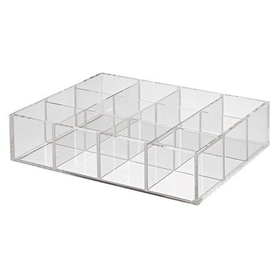 仕切りのない2段のアクリルケース。これもスタッキングできます。引き出し式なので、どこに収納しても取り出しやすく、透明なので何がどこにあるかも確認しやすいですね。収納時にある程度色分けするなど自分なりのルールを決めておくと、さらに取り出しやすくなりますよ。