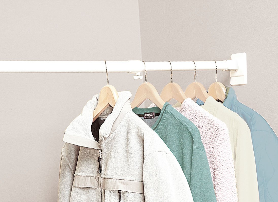 突っ張り棒を使った収納術は、狭いスペースを有効利用したいときの定番です。突っ張り棒を取り付けて衣類をかけておく際には、S字フックとの合わせ技も有効。突っ張り棒に直接ハンガーをかけるだけではなく、間にS字フックをかけておきます。そのS字フックにハンガーをかけて、ジャケットなどの肩の厚みが重ならないようにすれば、倍の衣類をかけることができます。