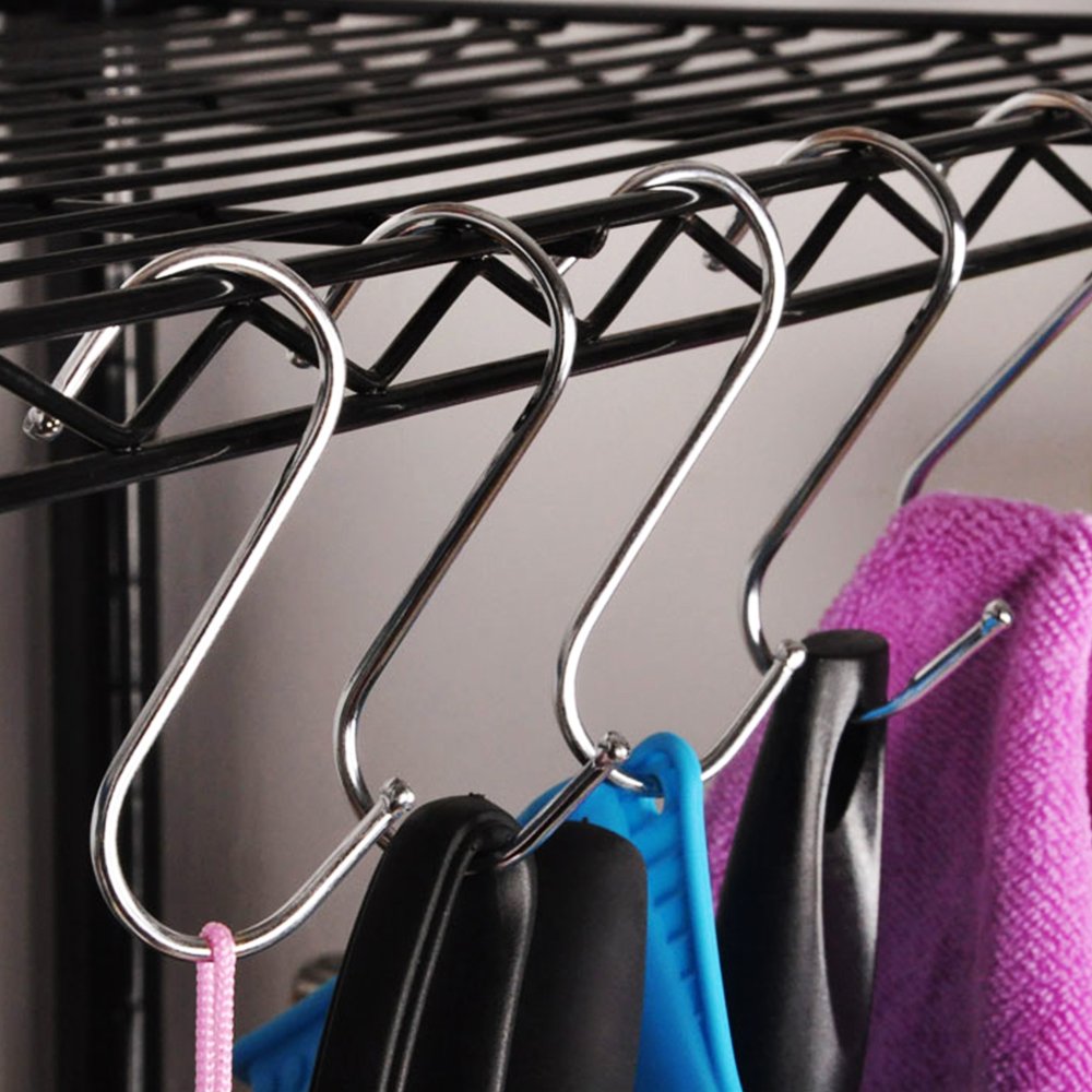 便利なS字フックは、吊す収納で大活躍です。壁にワイヤーネットを吊してS字フックをかけておけば、帽子やスカーフなどの小物や、アクセサリー、バッグも吊して収納できます。狭い場所でも省スペースで、何があるのか一目瞭然。探す時間も省けます。