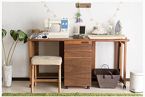 ミシンデスクにこだわりたい本格派に。アイロン台とミシン作業スペースが一緒になったタイプ。広々とした作業テーブルでものづくりがはかどります。どちらのテープルも折りたたむことができるので、作業しないときはコンパクトに置いておけますよ。