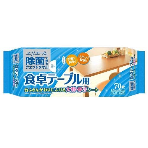 テーブル用のウェットティッシュの利点は、簡単に除菌ができること。これは台ふきにはないメリットです。アルコールを含んだシートで、食卓はいつも清潔。子どもが汚れた手でつかみやすいイスの背や机の裏側もサッと拭けます。ついでにシンクや台所まわり、冷蔵庫の取っ手などちょこっと掃除でピカピカに。