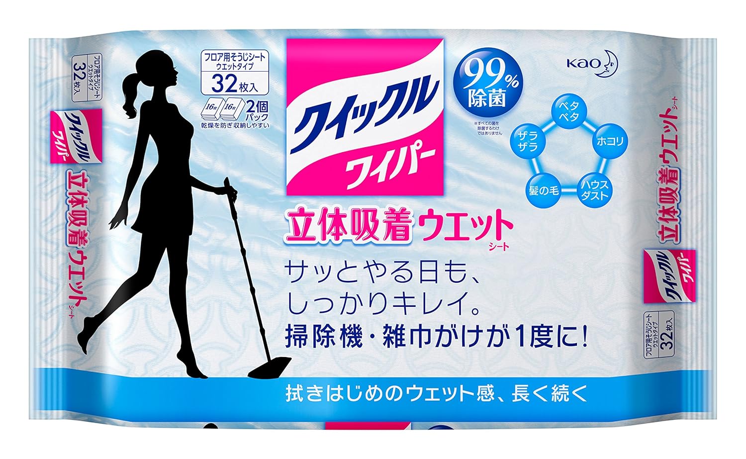 湿り具合がちょうどいいのも使い勝手がよいところです。サッと拭いたらすぐに自然乾燥するので、乾拭きをする必要がなく、手間がかかりません。