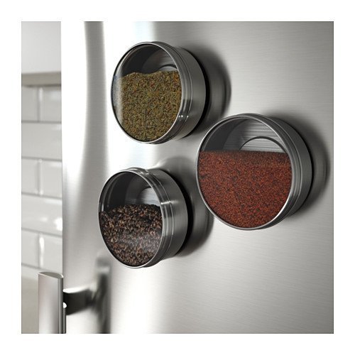 「どうしてもスペースがない!」という方には、冷蔵庫などにマグネットで取り付けるタイプのIKEAの容器がオススメです。