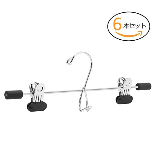 縦収納が可能なパンツ用ハンガー。クリップには、跡がつきにくい特殊加工が施されています。両端にはやわらかいスポンジがついていて、衣類を傷つけない工夫も。