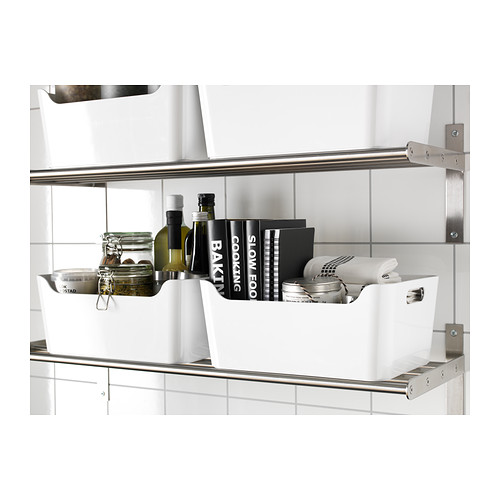 IKEAの大人気収納ボックス「VARIERA」。両手で持ちやすいように、左右に穴が開いているので高いところに置いておいても取り出しやすくなっています。水に濡れてもサッと拭き取ることができるので、お手入れがとても楽にできます。大小のサイズで299円から揃えることができるのでプチプライスなのも嬉しいポイント。