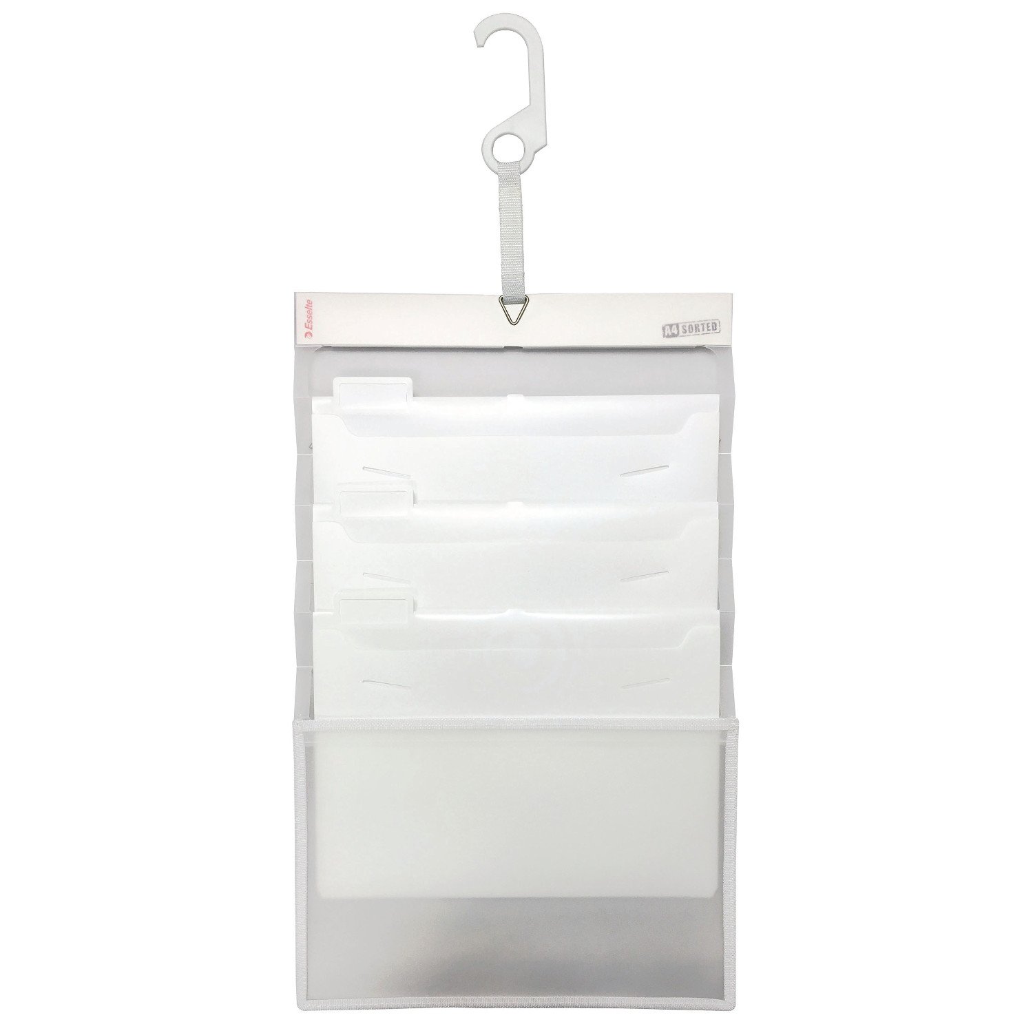 大まかに分類した書類を、さらにポケットに分けて収納。透明ポケットなので中身は一目瞭然! 普段よく使う場所にかけておけば、自然の目に入るので書類のチェックし忘れを防ぐことができますね。見せたくない書類がある場合は、扉の裏や、棚の側面にかけておけばOKです。