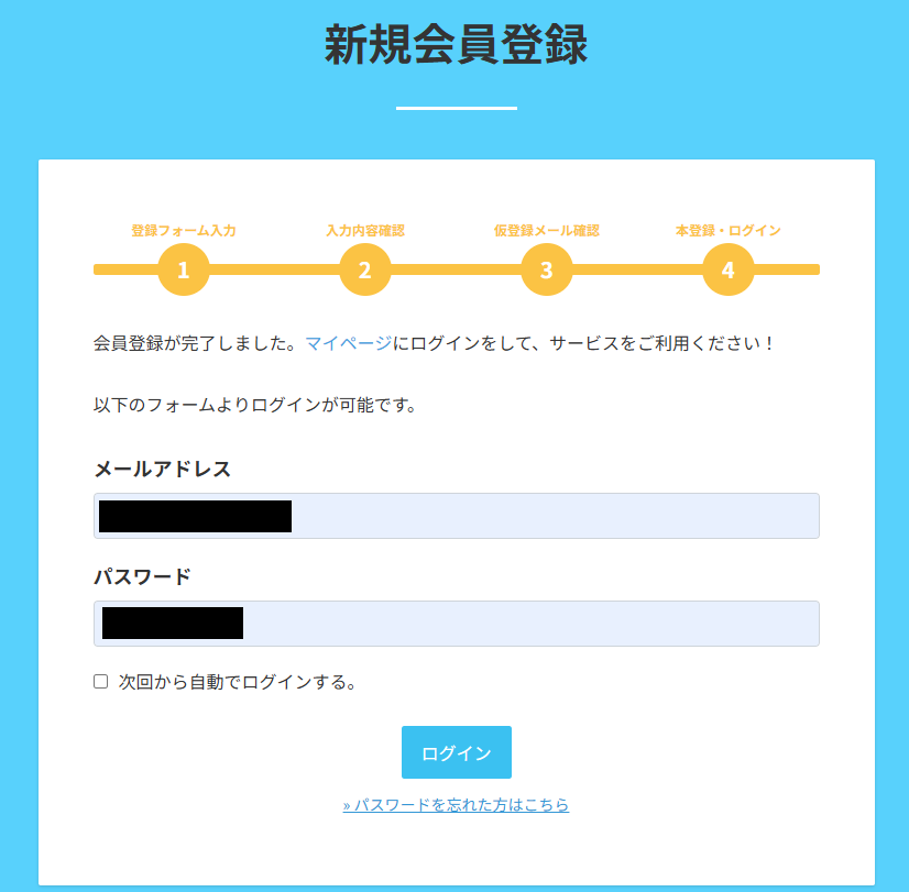 ご登録したメールアドレスとパスワードを入力してログインしてください。