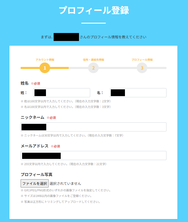 ログイン完了後にプロフィールを設定する画面が表示されますので、お名前やプロフィール写真などの情報を登録してください。