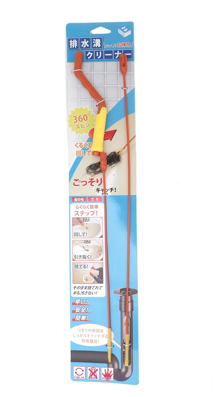 水回りの掃除に便利なのが、「排水溝クリーナー」です。先端を浴室や洗面所などの排水溝の奥へと挿入し、ハンドルをくるくる回転。手応えを感じたら、そのまま引き抜くと、排水溝の奥につまった髪の毛やぬめりなどをからめとりながら戻ってきます。届かないからとあきらめていたお風呂や洗面所などの排水溝を、洗剤を使わずにキレイにしてくれる優れものです。
