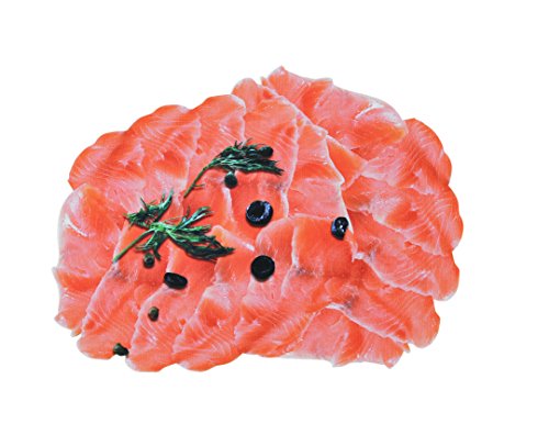 サーモンのイラストが描かれたランチョンマットです。撥水加工してあり、水をこぼしてもサッと拭き取れ、お手入れも簡単。少し離れた場所から見ると、本物かと目を疑うようなリアルさです。
