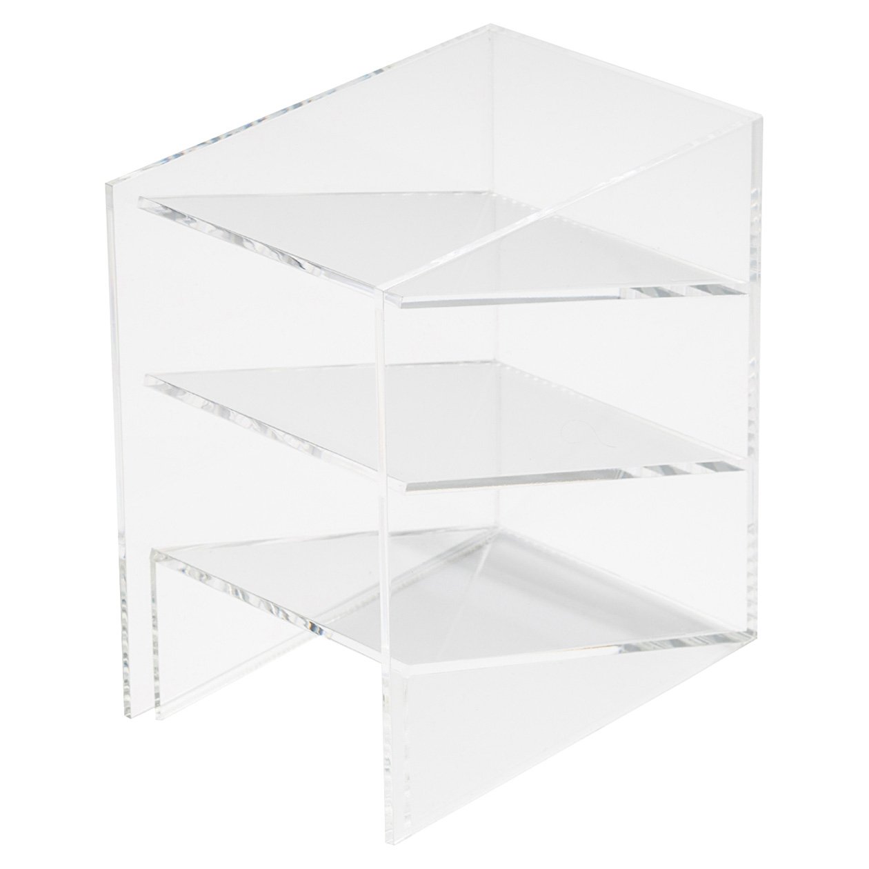 無印良品で人気を博しているのが、アクリル製の小物ラック。こちらの小物ラックは、斜めになっているので取り出しやすいのがポイントです。細々したものは最上段に置くなど、工夫次第でさまざまなものをまとめて収納できるでしょう。