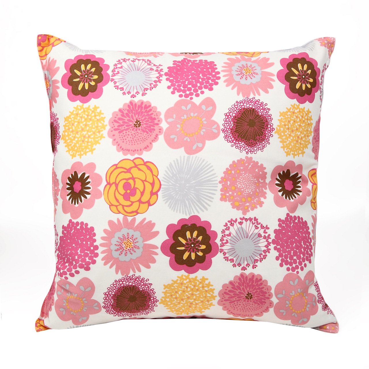 鮮やかポップな花柄が気分を明るくしてくれるクッションカバー。クッションカバーはひとつ目を引くものがあると、あとは無地の同系色のクッションでまとめればOKです。
