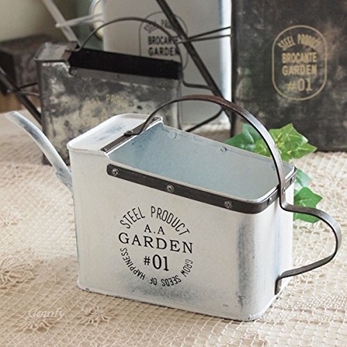 こちらはオイル缶をリメイクし、表面をアンティーク塗装したじょうろ。大容量で水もたっぷり入ります。空き口がしっかり空いているので、プランター代わりとしても最適!