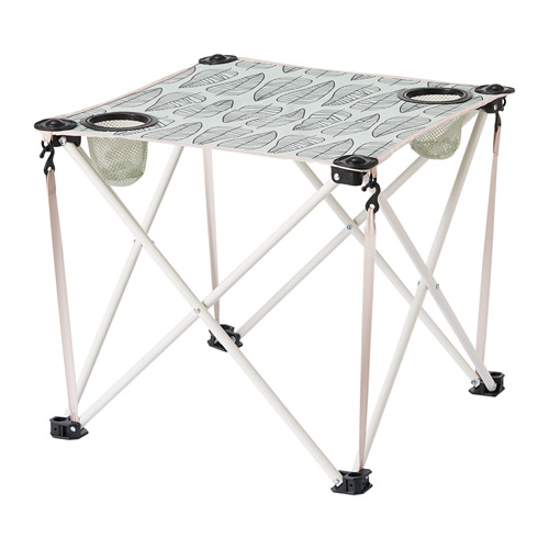 「FJÄRMA フィエルマ」は、ピクニックなどにうってつけな、布地とフレームから構成される折りたたみ式のテーブルです。テーブルトップにネット素材のポケットが付いていて、カップやグラスを安定させることができます。