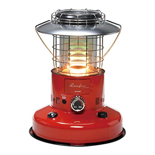 ランタン調のデザインのレインボーストーブ。外寸は高さ485.7mm、幅388mm、奥行388mm、カラーバリエーションは、ダークグリーンとレッドの2種類です。