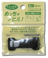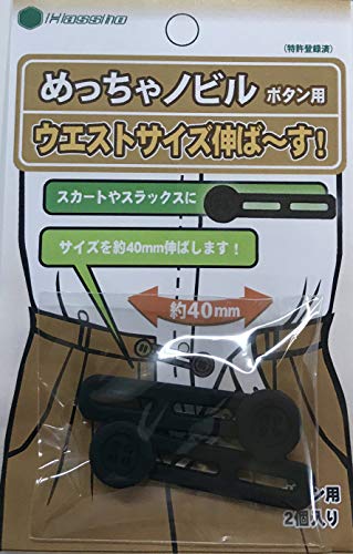 伸ばすことが難しい生地のズボンやスカートの場合は、ウエストサイズを変える便利アイテムを活用すると◎。その便利アイテムが、「めっちゃノビル!」です。シリコン製の「めっちゃノビル!」は、ボトムスのウエストを約4cm伸ばし、きついお腹周りをラクにしてくれます。「めっちゃノビル!」には、前カン用とボタン用があり、さまざまなタイプのボトムスに使用可能です。