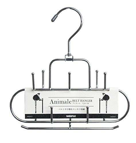 ステンレス製のベルトかけです。ベルトは丸めて収納するよりも、吊して管理した方が見やすく、取り出しやすく、便利です。バックルを引っかけて収納します。下の部分にはネクタイやスカーフも吊せます。ベルトを何本も持っている人は、まとめて管理ができるのがいいですね。