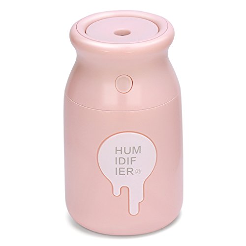 ガラス瓶に水を注ぎ、スイッチを押せば加湿機能がスタート。USBコードで繋いで接続できるので、パソコンを使いながらデスク上で利用することだって、もちろん可能です。写真はピンクですが、グリーンやブルーなどのカラーバリエーションもあります。