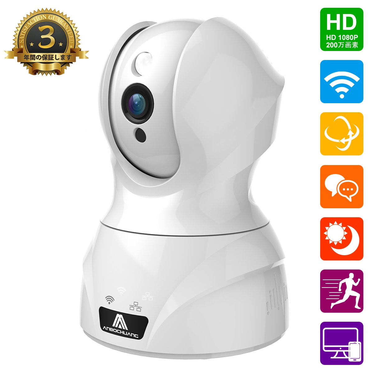 【最新 ANBOCHUANG ネットワーク/イヤレス IP カメラ 防犯/監視 カメラ ベビーモニター スマホ対応 日本語アプリ 暗視撮影マ イク内蔵 動体検知 ペット 子供 見守り (HD 1080P 200万画素, ホワイト)