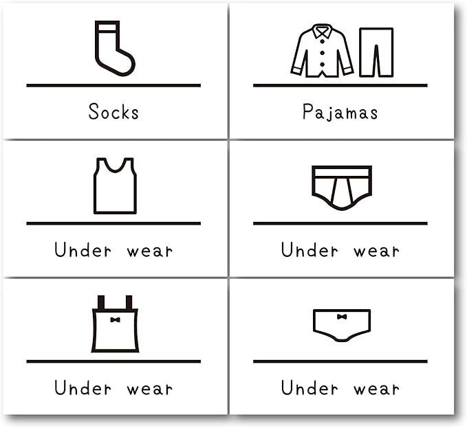 子ども用品のラベリングには、文字よりもイラストの方が分かりやすいようです。手書きが苦手な方には、市販のイラスト入りラベルシートもおすすめです。