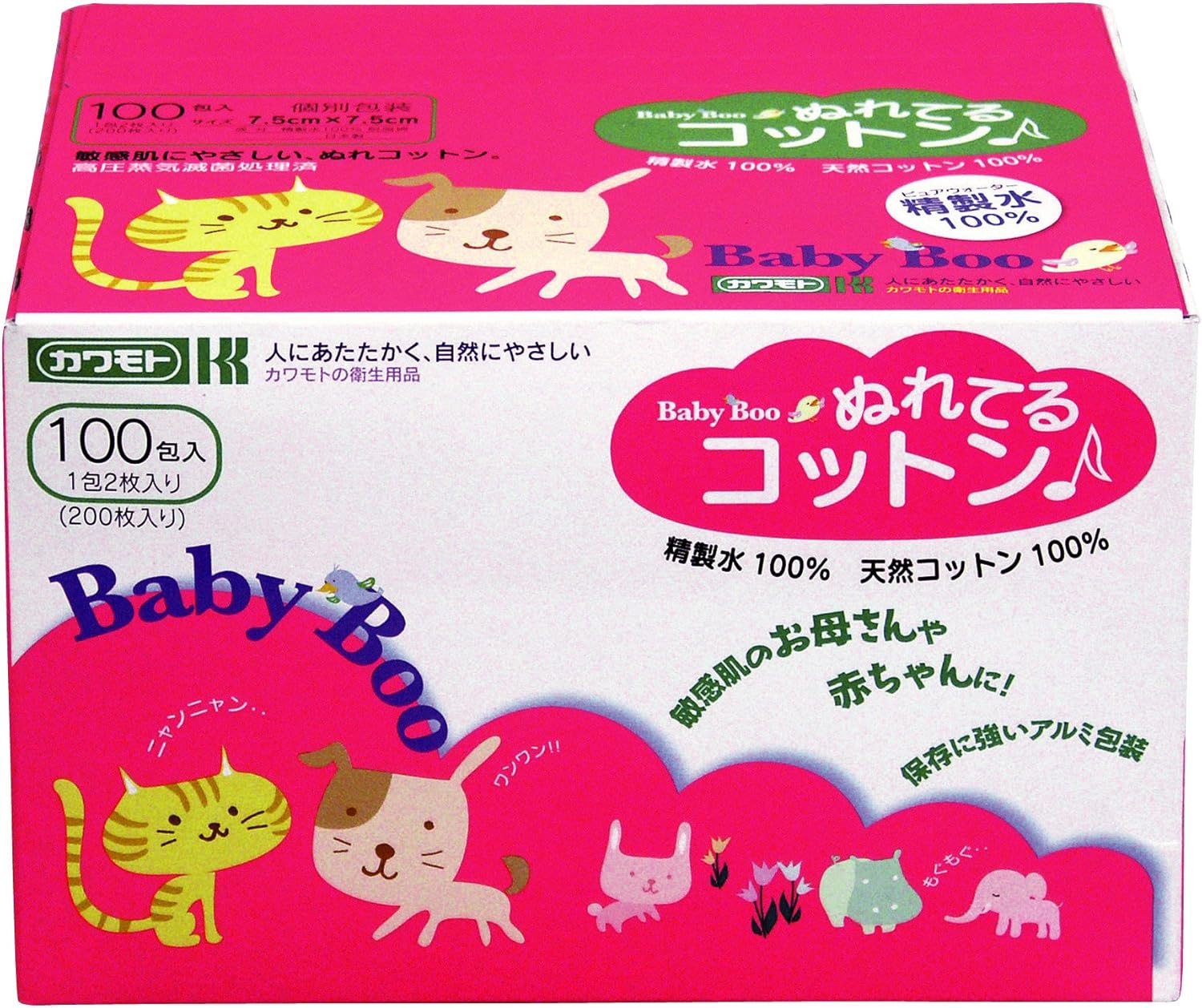 サイズ:7.5cm×7.5cm やわらか天然コットン100%の濡れコットンです。防腐剤不使用・ノンアルコール・精製水のみを使用しているため、敏感な赤ちゃんの肌でも使用できる低刺激で安心な使い心地となっています。